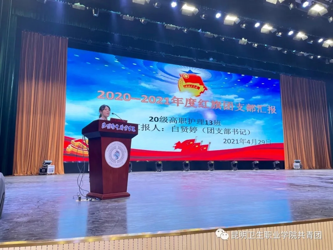 随后,党委委员、副院长周平同志宣读了《 关于表彰2020-2021年度优秀共青团员、团干、红旗团支部的决定》,并对先进集体和个人进进行表彰,与会领导上台为获奖单位和个人颁发荣誉证书。20级高职护理13班作为红旗团支部代表向大会做了汇报。