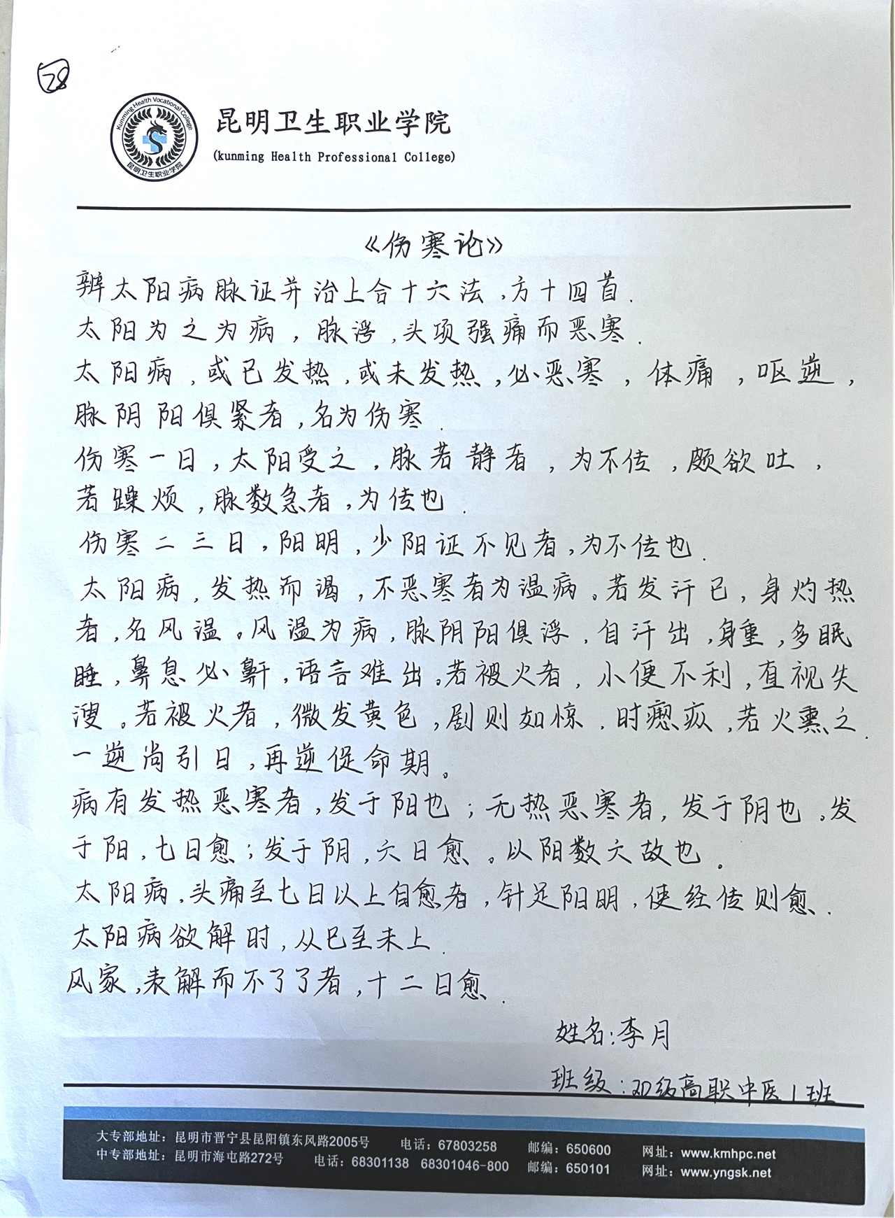 第一名 21级高职中医1班 刘嘉丽(软笔)