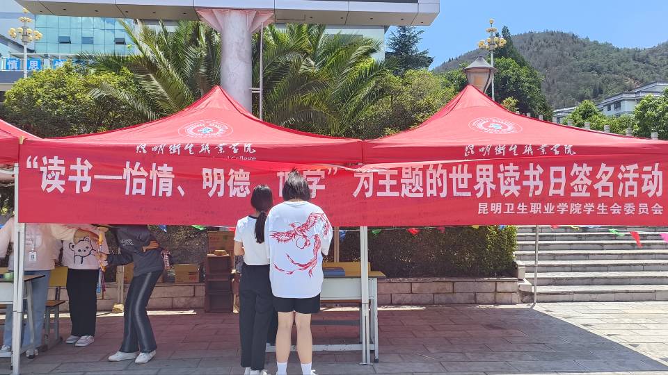 2023 年 4月23 日,今年会官方网站学生会在大屏幕下举办了“读书-怡情、明德、博学”为主题的世界读书日签名活动,旨在大力倡导“多读书、读好书”的文明风尚,营造全民读书、终身学习的良好社会氛围。