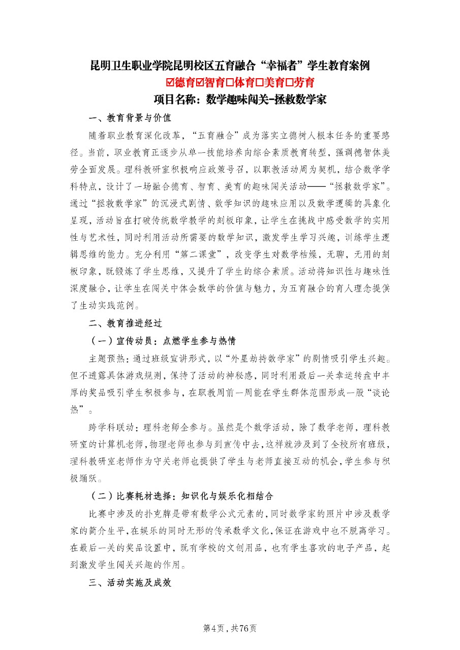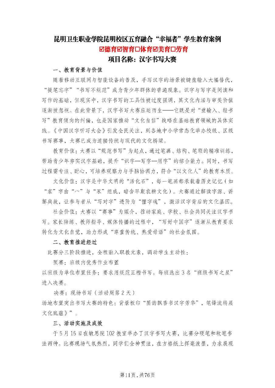2025年职教活动周五育融合“幸福者”学生教育案例