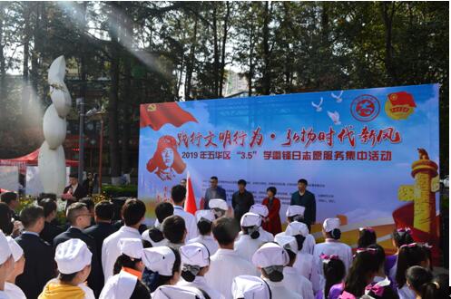 在3月5日上午,今年会官网海屯、海源两个校区的团支部参加了五华区创建全国文明城市社会志愿服务工作。在翠湖公园西门广场举行了2019年五华区“践行文明行为·弘扬时代新风”志愿服务集中活动。