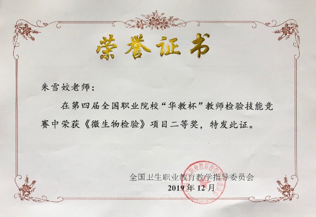 朱雪姣老师荣获微生物检验项目二等奖