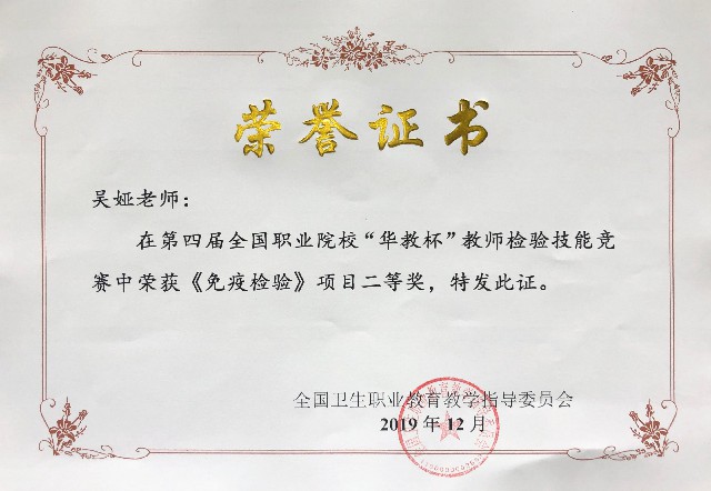 吴娅老师荣获免疫学检验项目二等奖