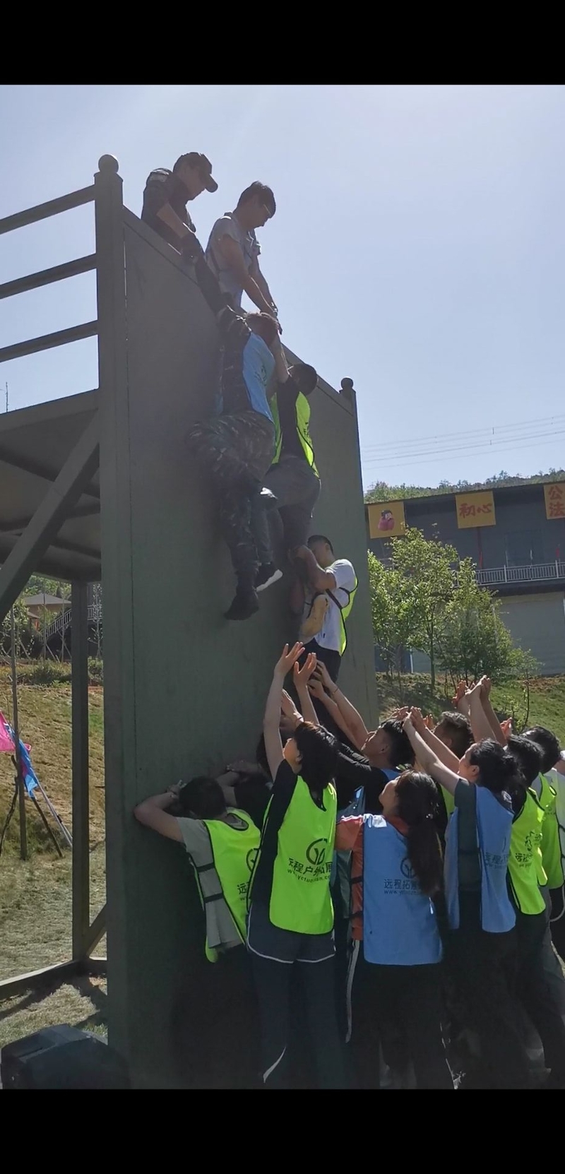 随后,两组队员分别进行“信任背摔”、“挑战150”和“冰海乘船”、“毕业墙”等项目比赛,老师们热情似火,相互协作,积极挑战困难,完成各项比赛任务,整个赛场充满了“加油声”、“欢呼声”。