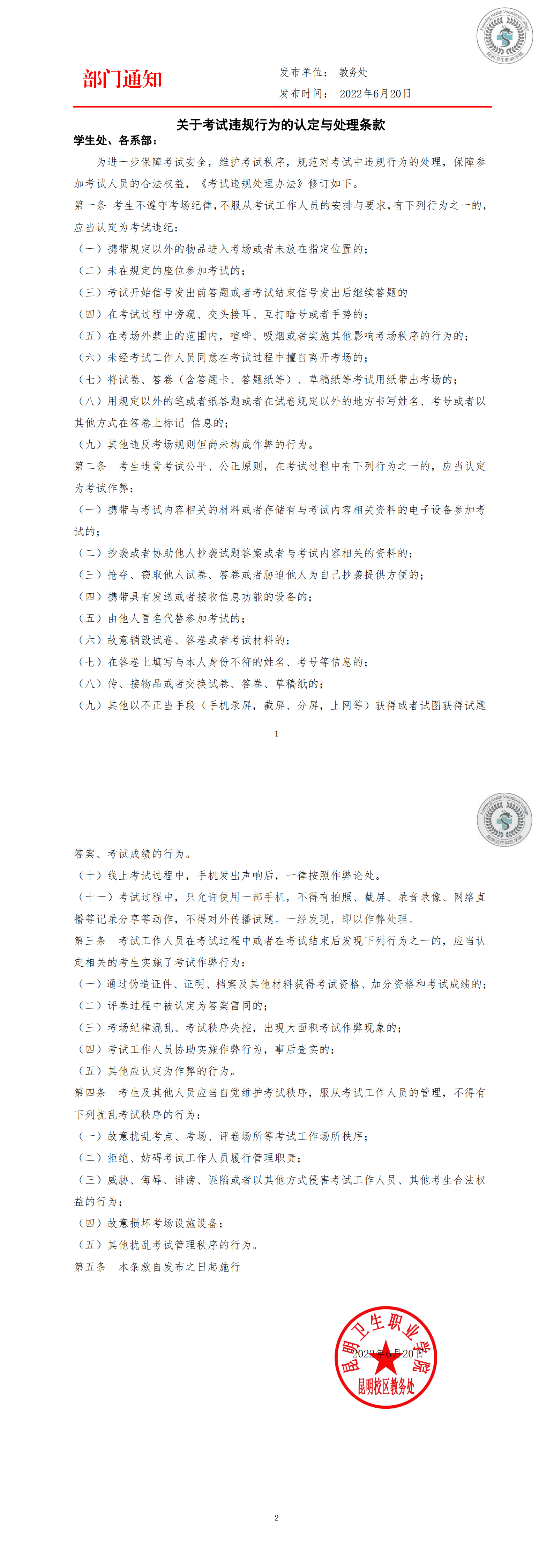关于考试违规行为的认定与处理条款