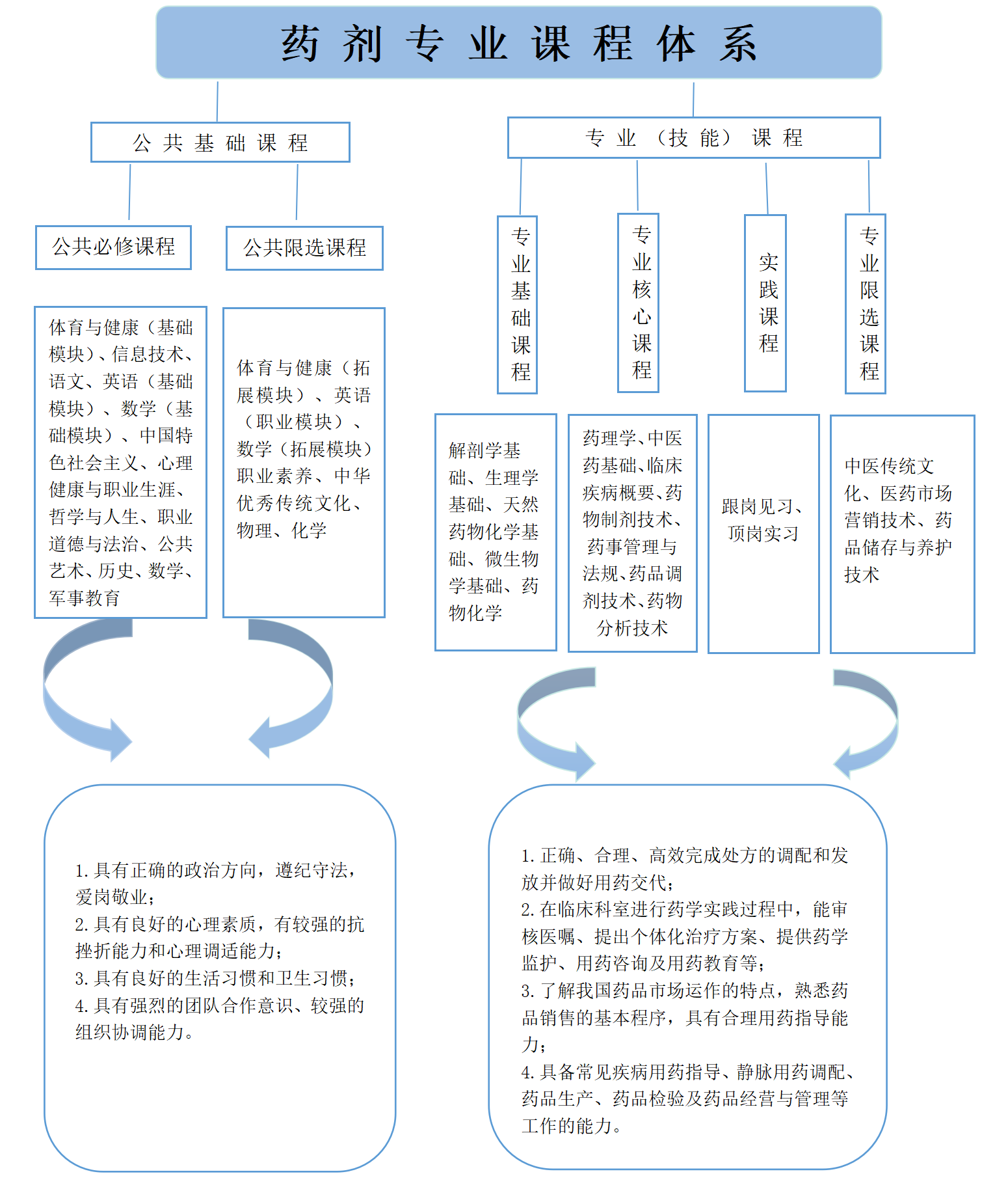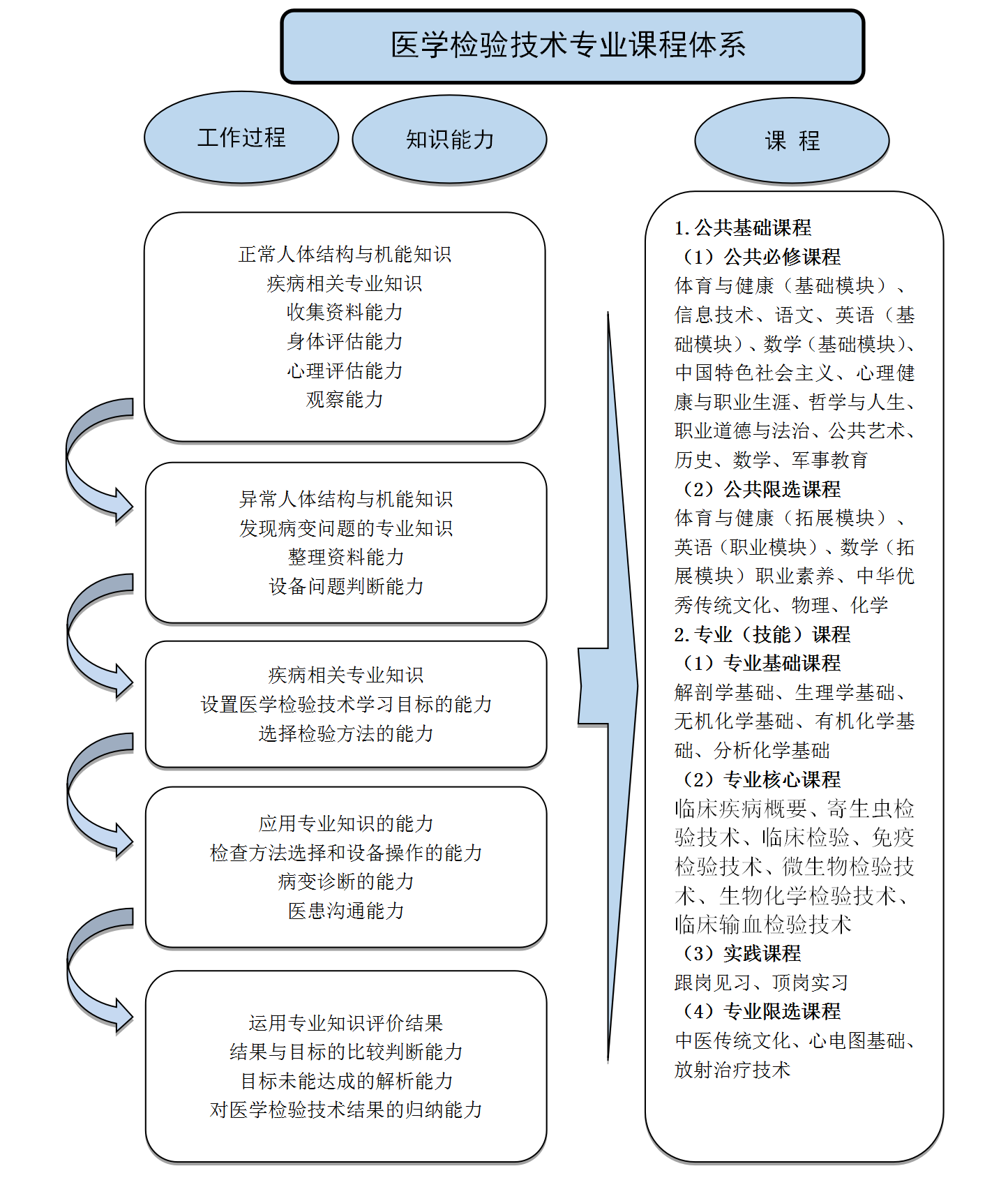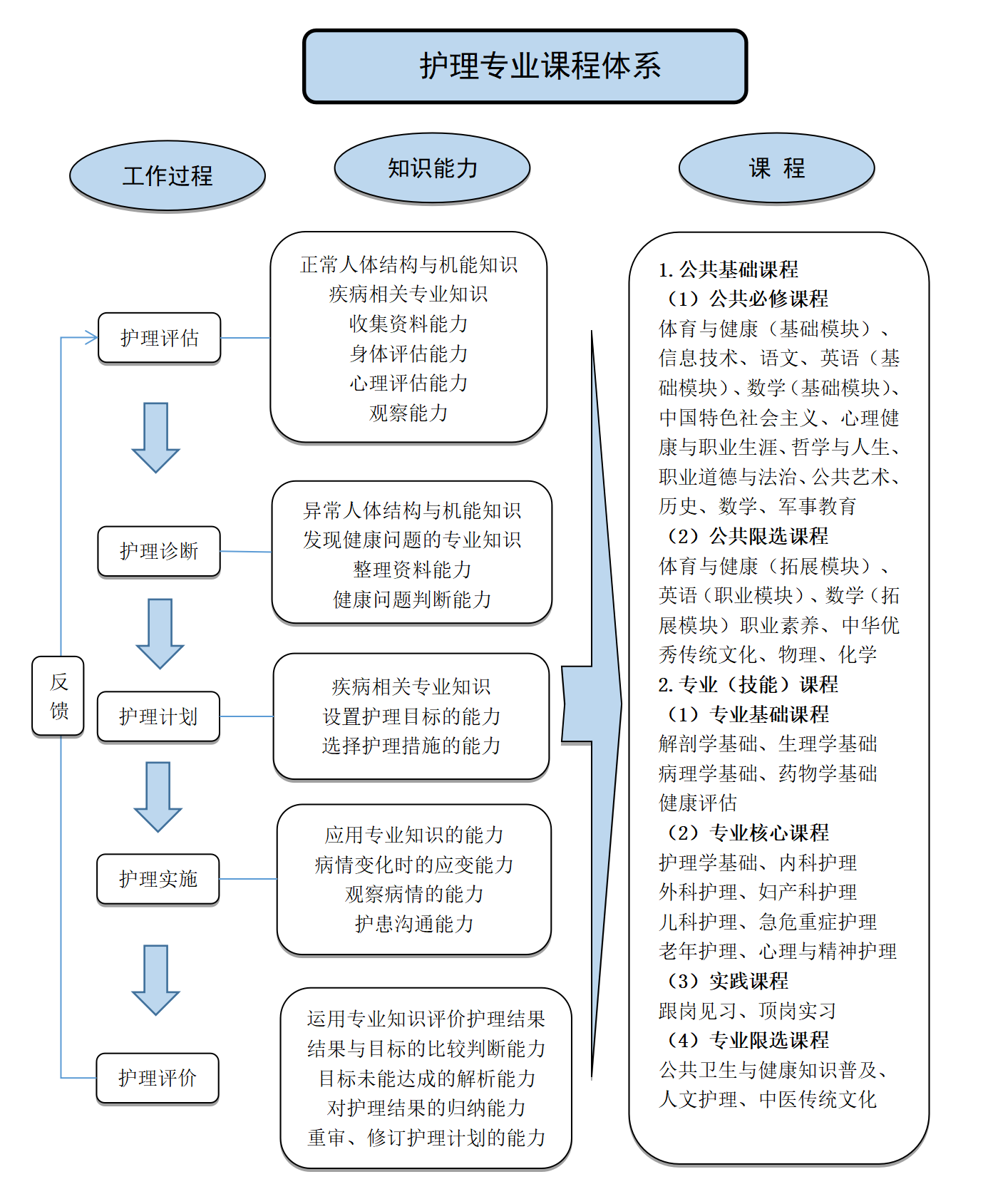 专业基础课程:解剖学基础、生理学基础、病理学基础、药物学基础、健康评估。