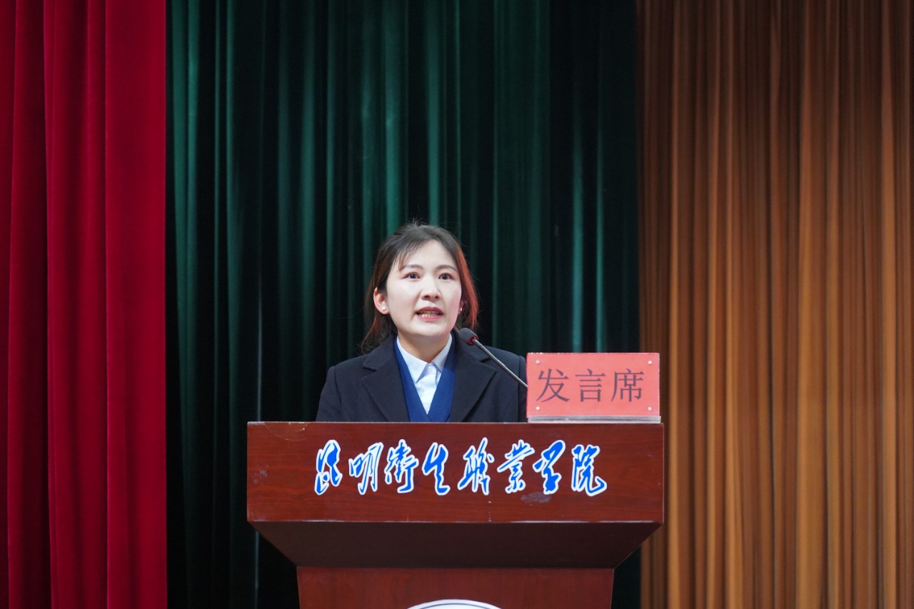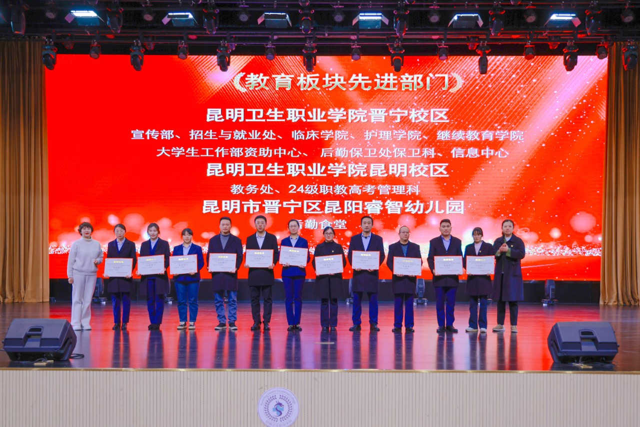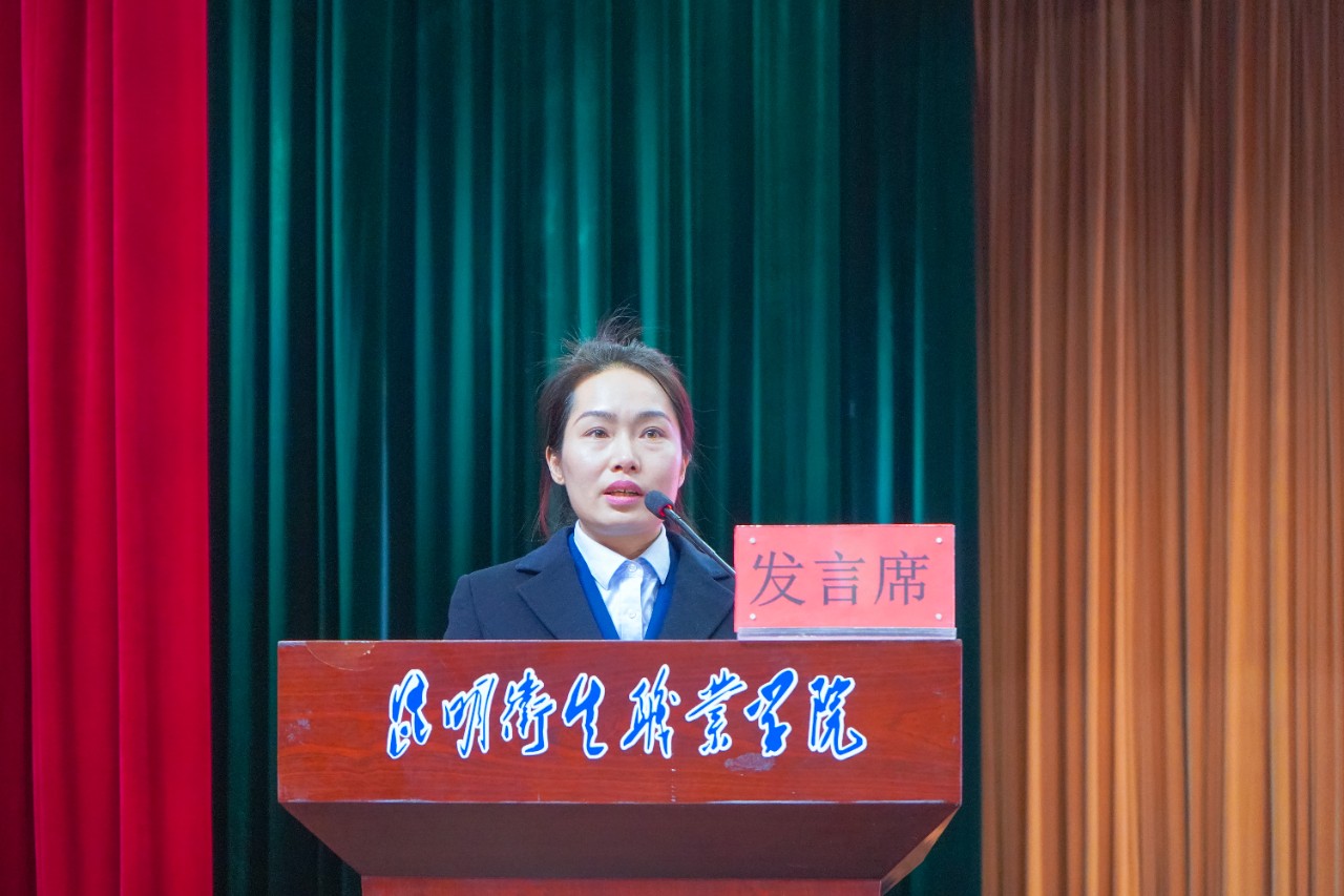 学院晋宁校区杨继苹、昆明校区杨帆,学院附属云峰医院牟玲玉、吴师锋,合荣培训学校曾庆波等5名先进个人和先进集体代表分别上台做了经验交流。
