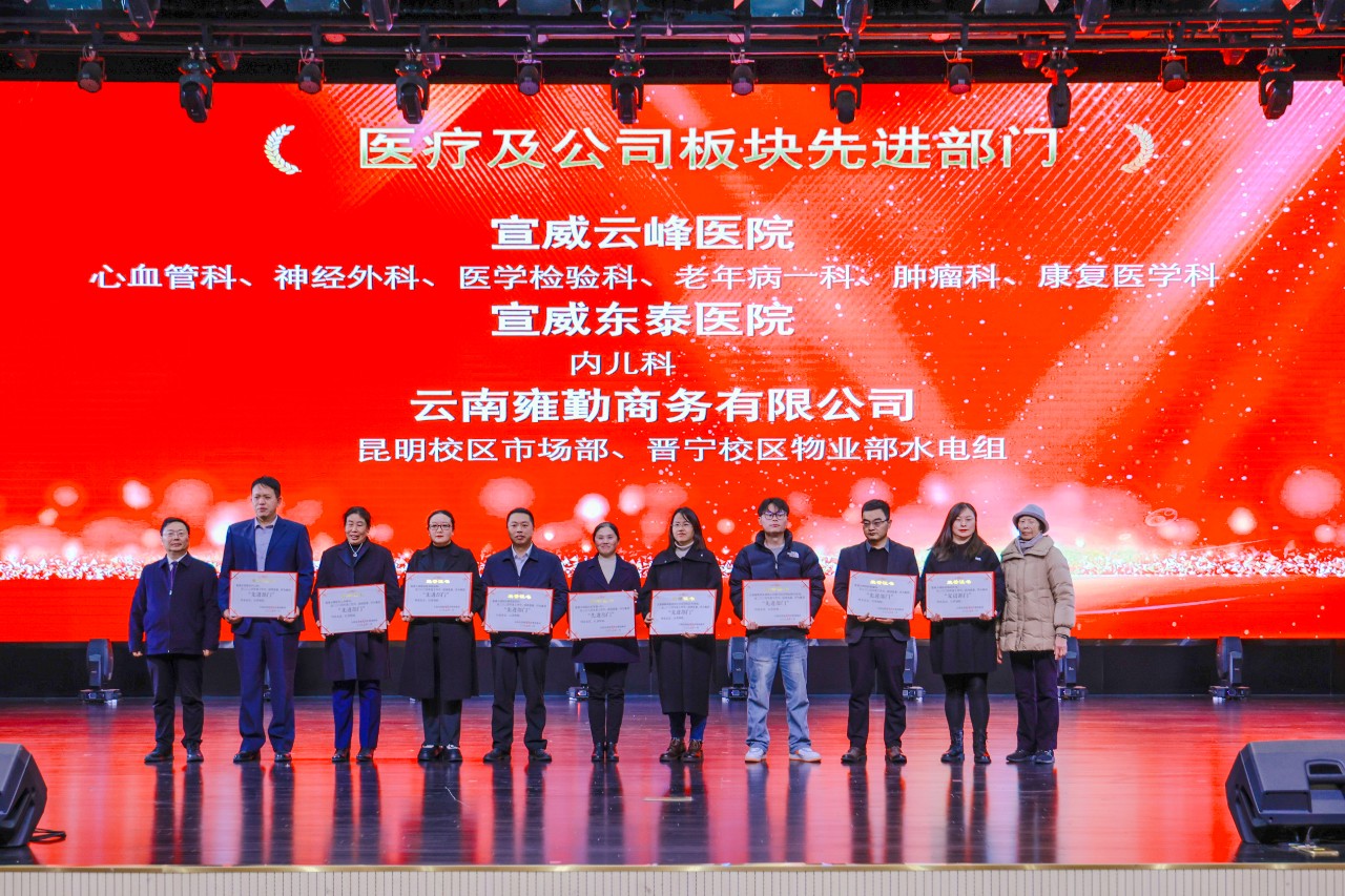 今年会官方网站附属宣威云峰医院院长李配德宣读集团关于表彰2024年度先进的决定。集团1个单位获“先进单位”称号,20个集体荣获“先进部门”称号、120名职工荣获“先进个人”称号。