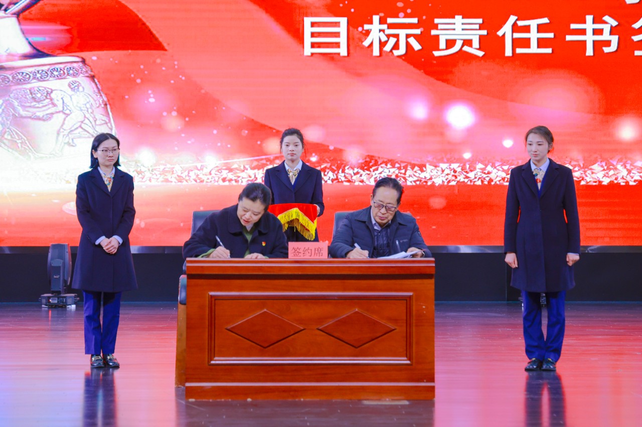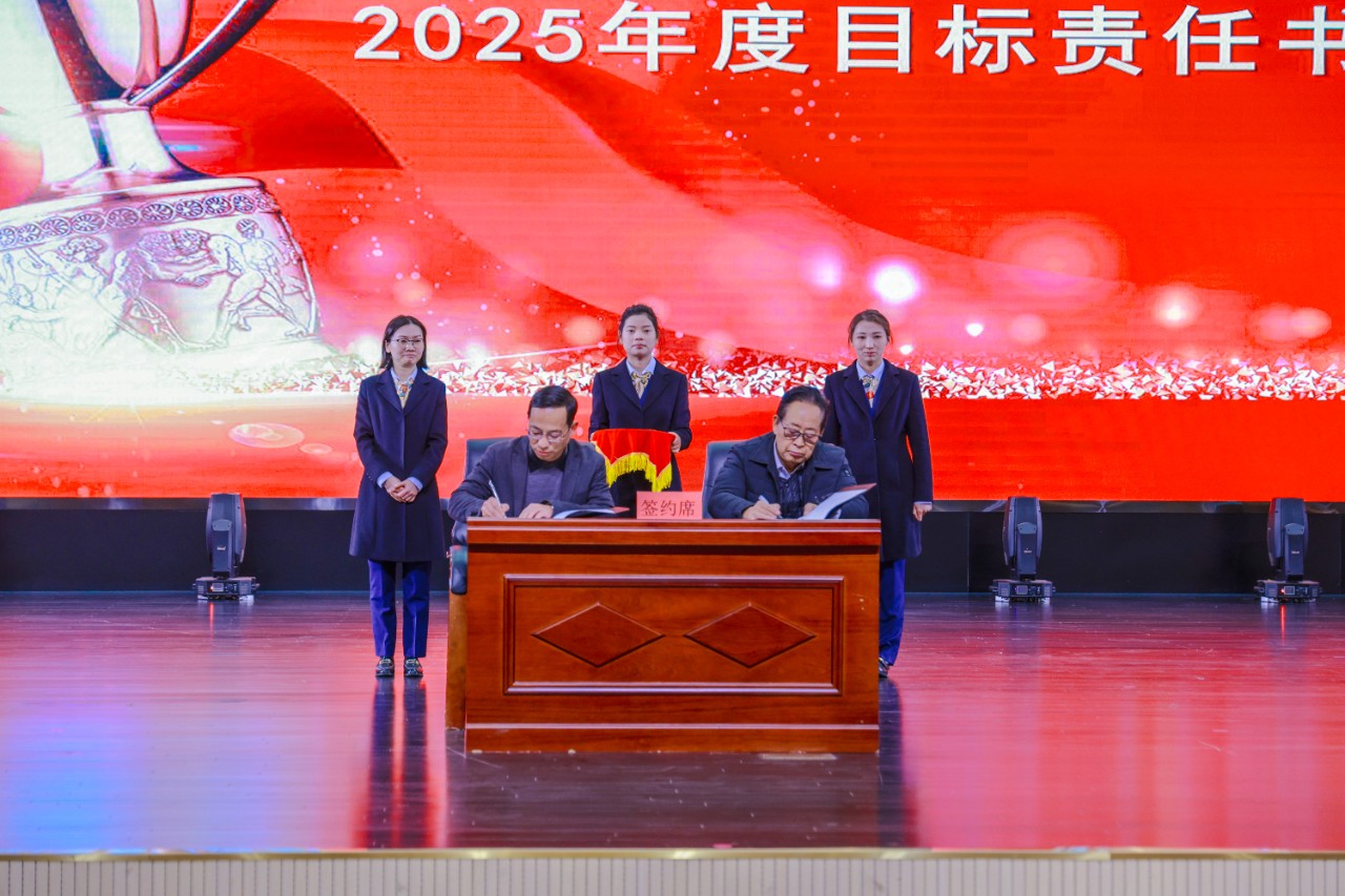 会议最后一项议程,集团领导与各单位负责人签订了2025年度管理目标责任书。