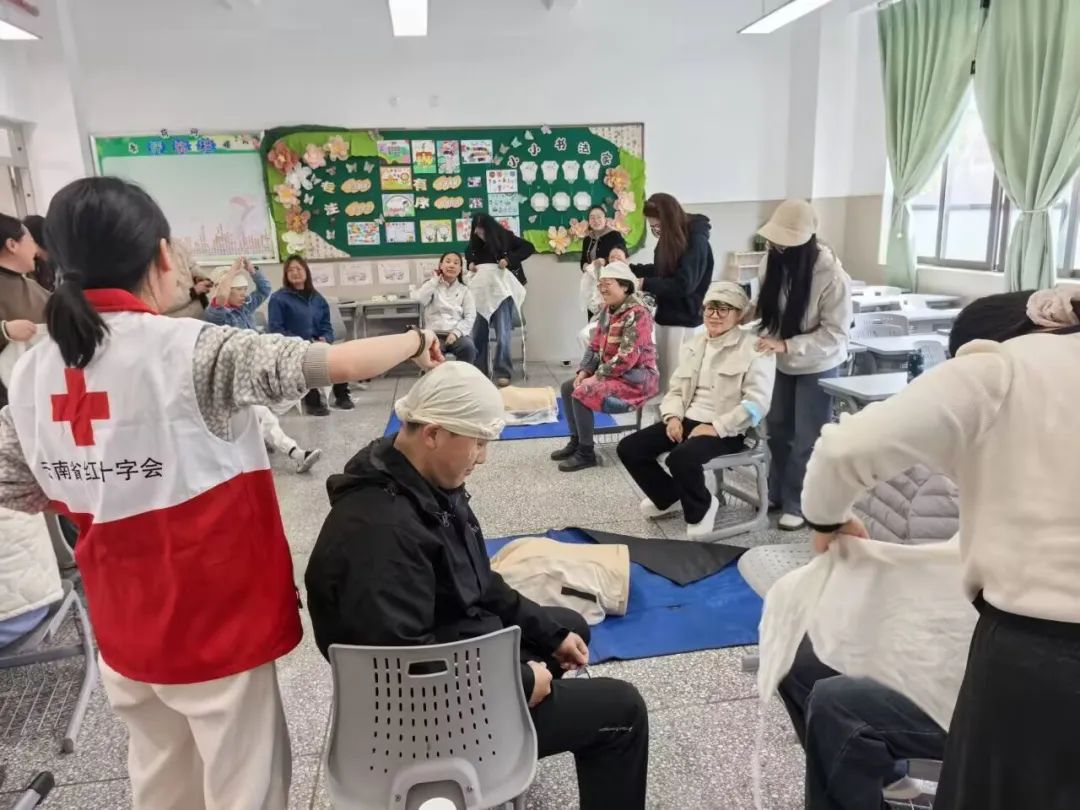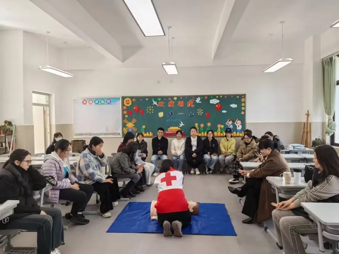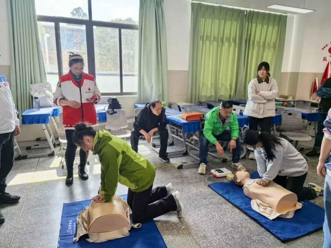 本次急救知识进校园活动分两个阶段开展。2月19日,学院联合晋宁区红十字会,为韶山小学170余名教师开展了急救知识和技能培训,内容涵盖心肺复苏(CPR)标准操作流程、自动体外除颤器(AED)使用方法、创伤救护技术要点以及常见急症的应急处置等多个重要模块。培训结束后,通过考核的教师获颁红十字救护员证书