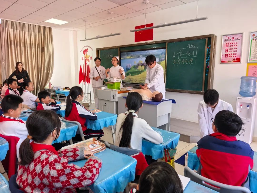 2月27-28日,在李玉晶副院长的带领下,32名师生走进韶山小学,面向全体学生开展急救知识与技能培训。培训师生因材施教,按照“听得懂、学得会、记得住、用得着”的原则,根据小学生的年龄特点和认知差异,精心设计了分级课程,寓教于乐,让孩子们在互动游戏中学习并掌握急救相关知识和技能。