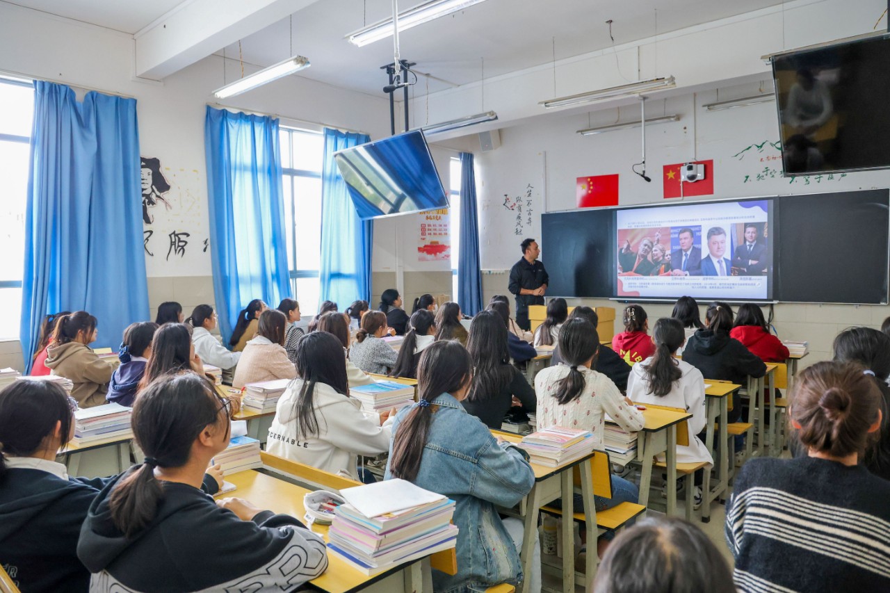 为深入推动习近平新时代中国特色社会主义思想进课堂、进头脑、进教材,充分发挥思想政治理论课主渠道作用,落实立德树人根本任务, 10月12日下午,学校党委书记马季昕带头走上讲台为学生讲授《形势与政策》课。