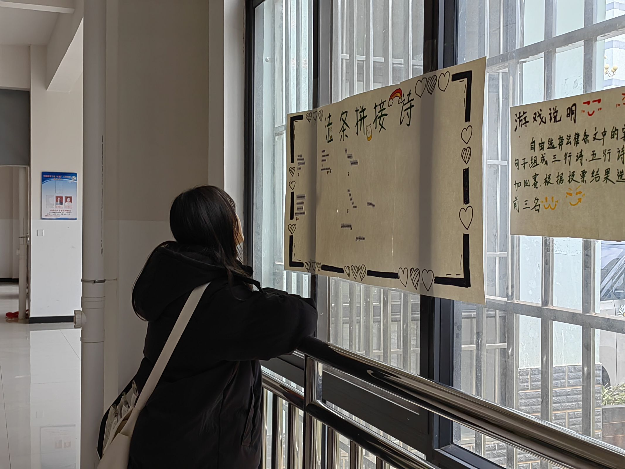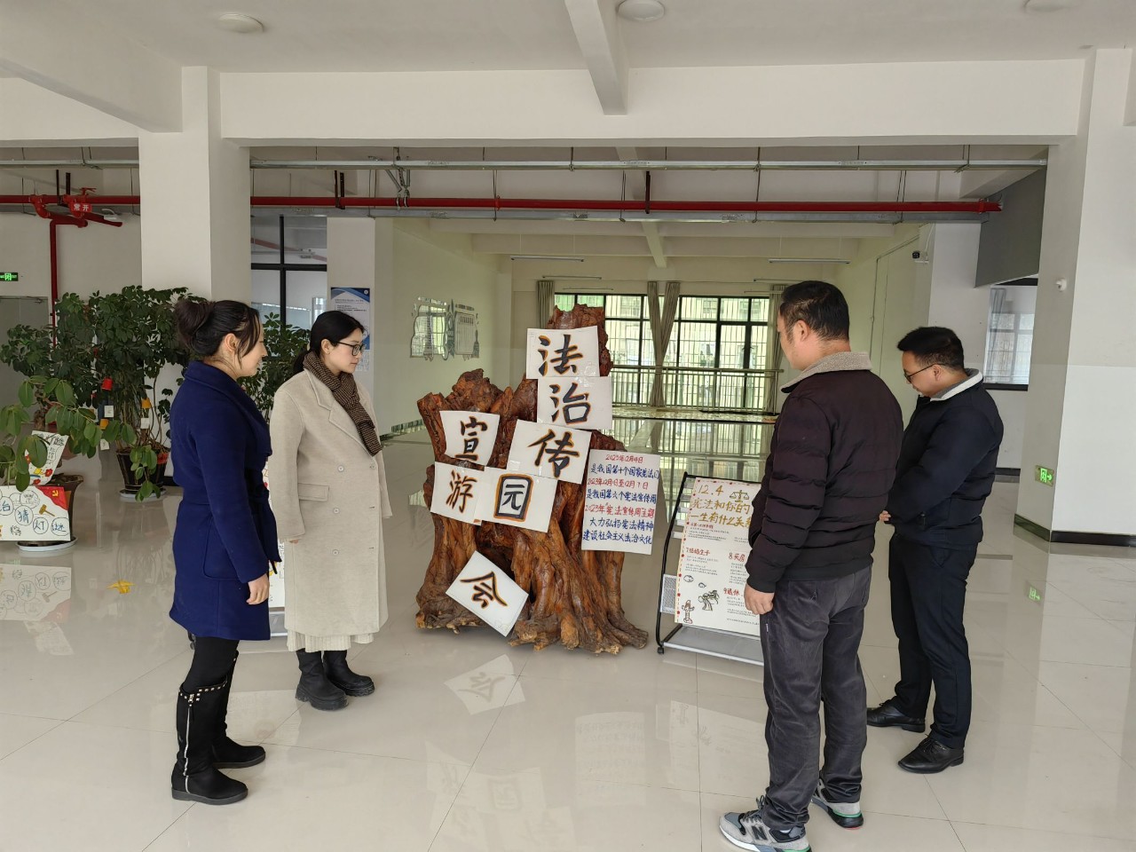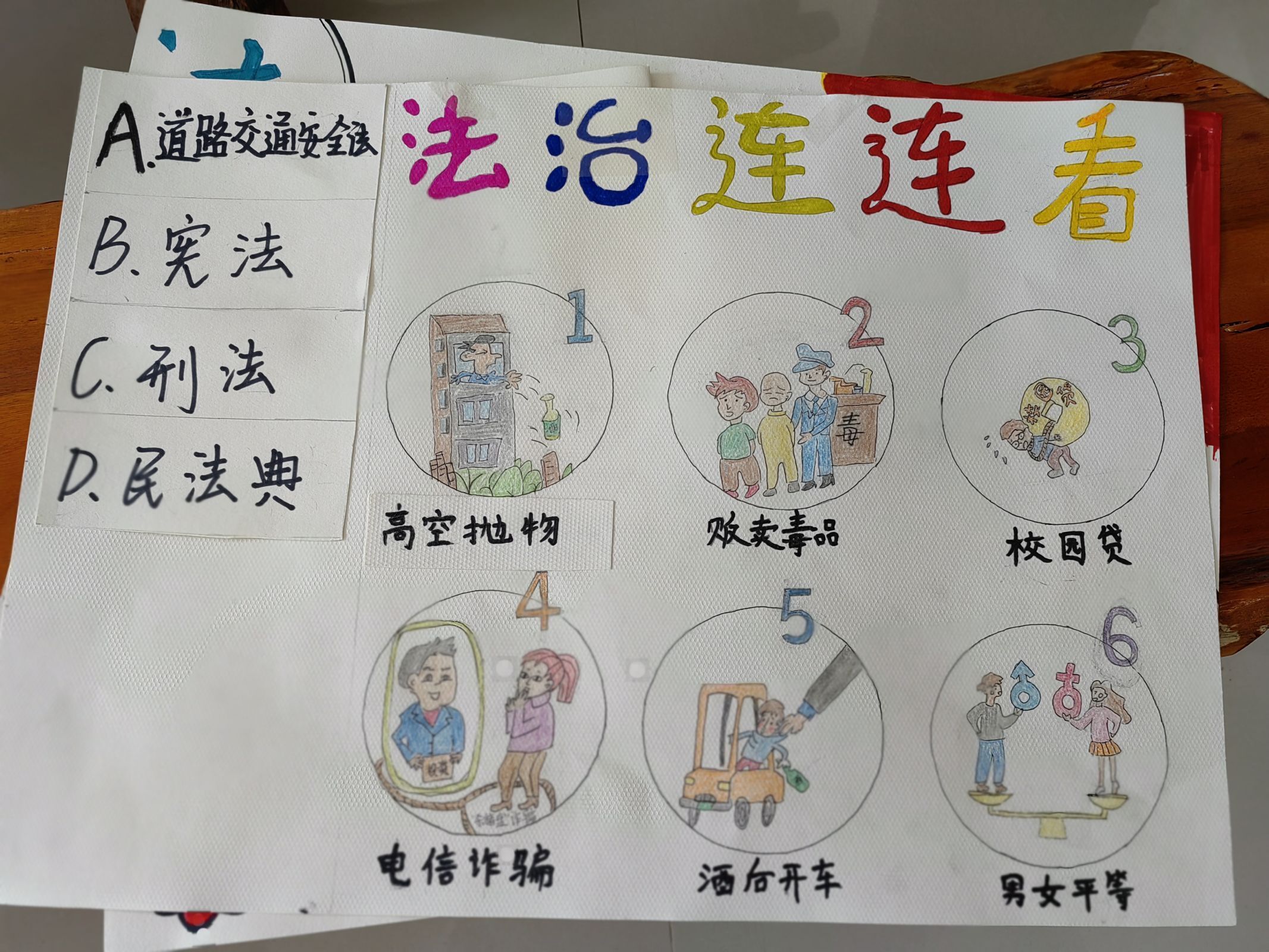 活动现场还准备了法律谚语、法律条文、法律术语等纸条,通关教职工发挥创意,粘贴在展板上,组成“法条拼贴诗”。最后由在场教职工进行投票,评出前三名,并获得奖品。