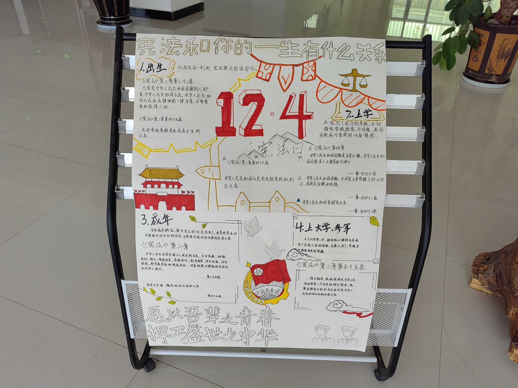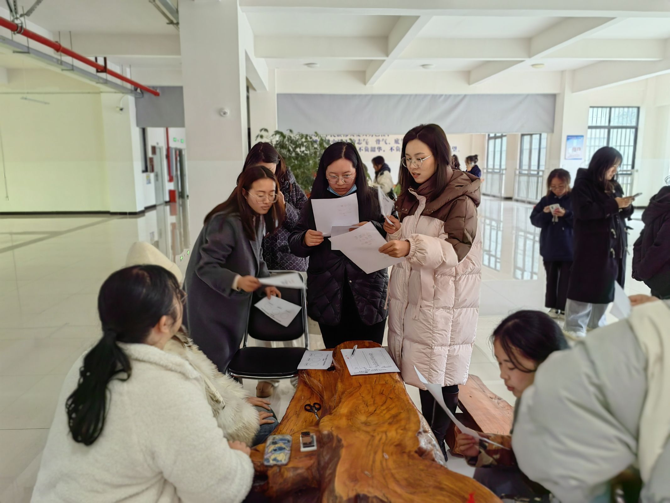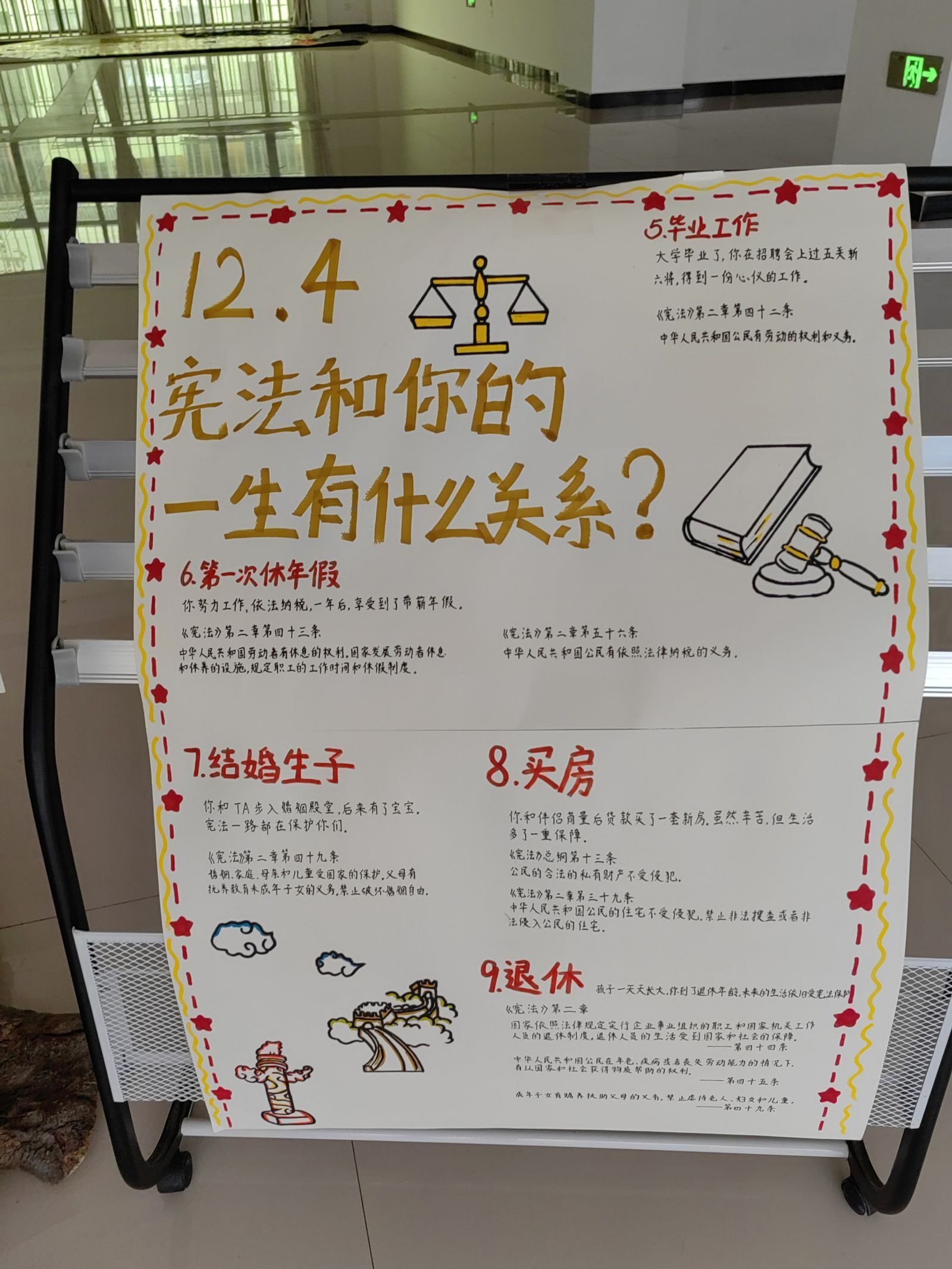 活动现场还准备了法律谚语、法律条文、法律术语等纸条,通关教职工发挥创意,粘贴在展板上,组成“法条拼贴诗”。最后由在场教职工进行投票,评出前三名,并获得奖品。