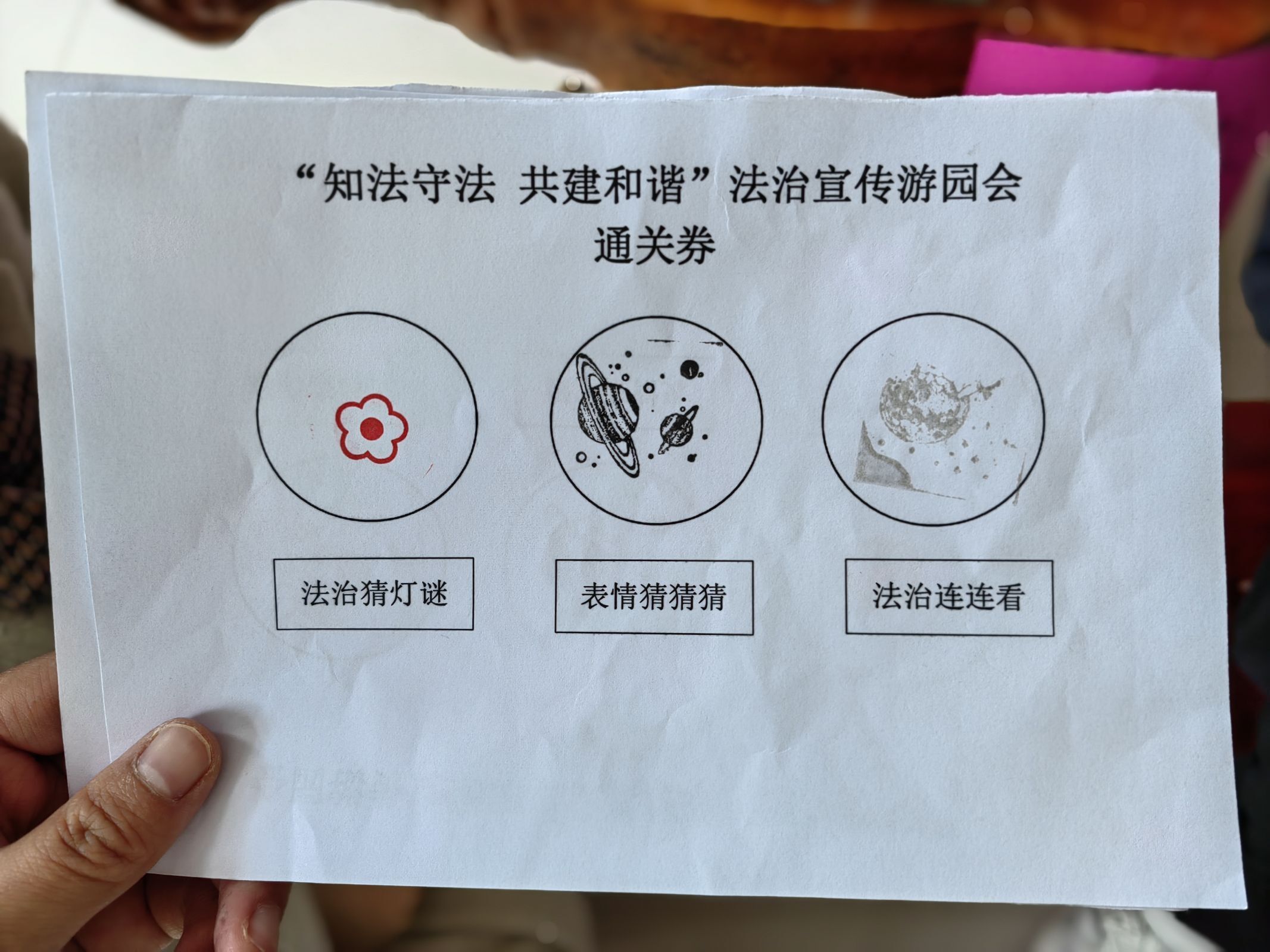 活动以宪法、民法典、刑法等法律知识宣传为主题,设置3个普法小游戏,以“法治学习+游戏挑战”的形式,让教职工们人手持一张法治游戏通关卡,在欢声笑语中学习法律知识。教职工们按照场地布置的箭头所示,依次完成“法治猜灯谜”、“法治连连看”、“表情猜猜猜”三个项目的闯关,每通过一关后在通关卷上盖章,三关通过后获得相应奖品。在活动现场,教职工们积极参与,不但获得了丰富的礼品,更收获了满满的法律知识。