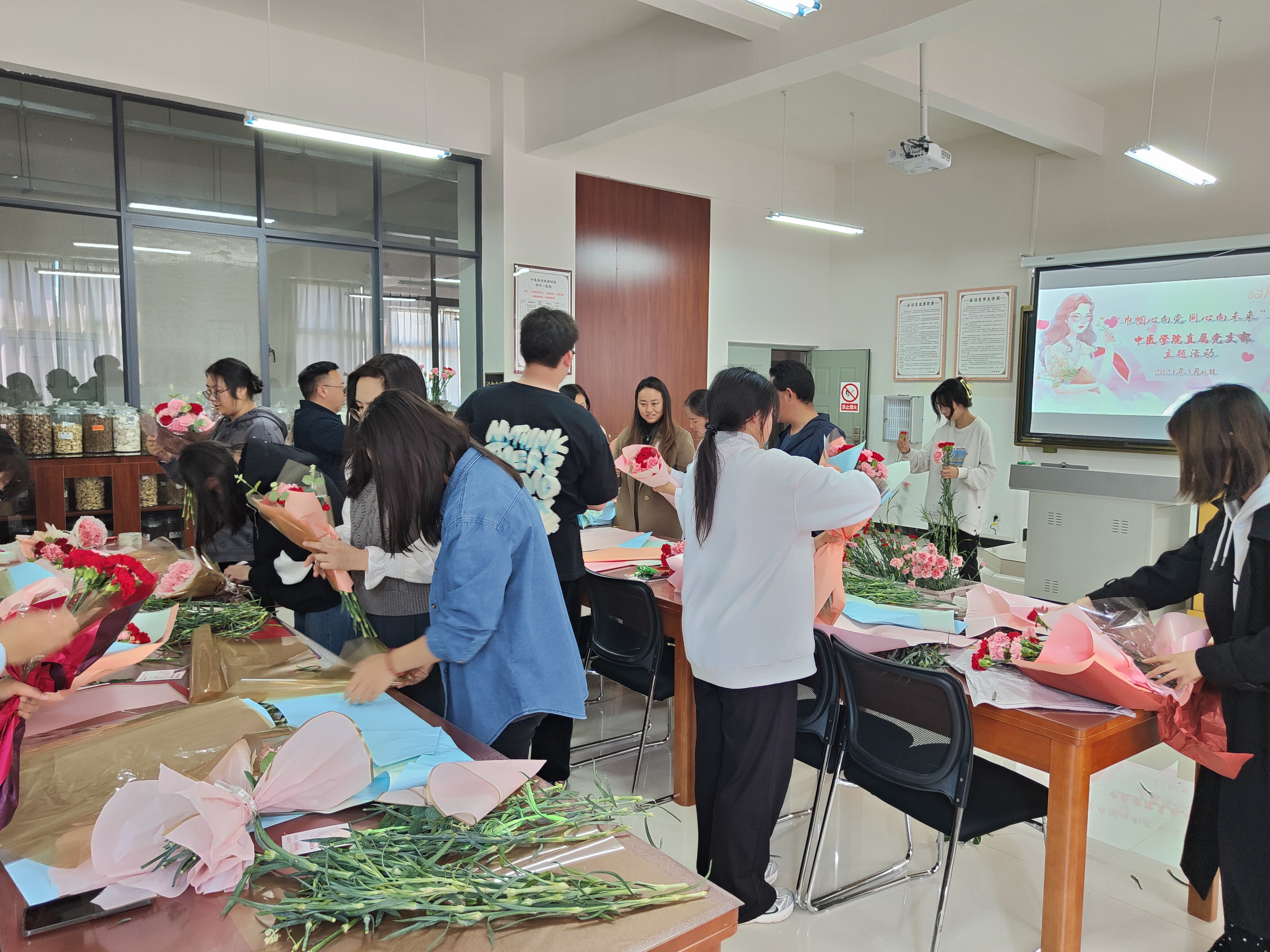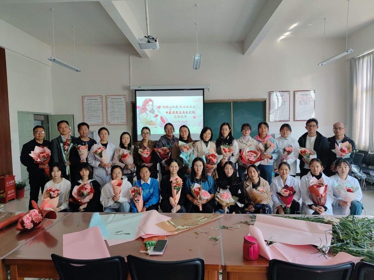 为深入贯彻落实党的二十大精神,充分展示新时代女性健康向上、踔厉奋发的巾帼风采。在第114个“三八”国际妇女节来临之际,中医学院直属党支部于2024年3月6日开展了以“巾帼心向党 同心向未来”为主题的“三八”国际妇女节庆祝活动,活动由中医学院直属党支部书记易斯坐同志主持,中医学院全体教职工参加活动。