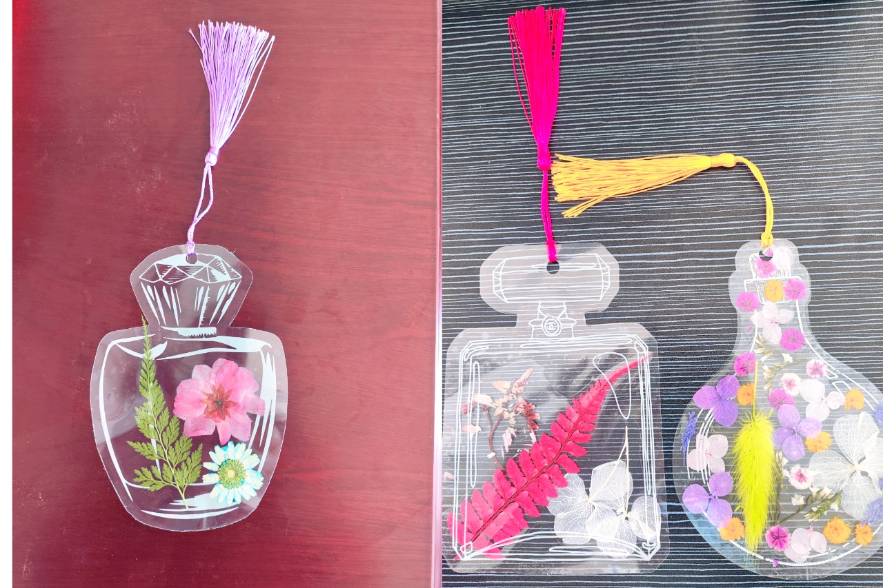 活动依次进行的是创意压花书签制作,老师们纷纷跃跃欲试,发挥创造力,整合造型,使得原本普普通通的花草经过她们的巧手修剪构思后,错落有致地悄然绽放。大家看着自己创作的压花书签,也感到了满满的成就感与幸福感。简简单单的制作过程,不仅可以将大自然的美丽永久保存下来,也发挥了大家的想象力,创造出独一无二的作品。