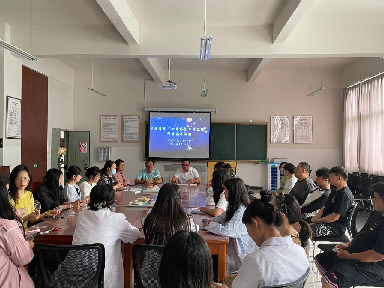 在第“29”个世界读书日来临之际,为鼓励全体师生养成阅读的好习惯,提高师生阅读兴趣,让读书成为师生日常生活中不可或缺的一部分,在今年会官方网站工会委员会的组织和大力支持下,中医学院工会小组于2024年4月17日开展了以“四月芬芳 书香致远”为主题的师生读书活动,活动由中医学院直属党支部书记易斯坐同志主持,中医学院全体教师及部分学生代表参加活动。