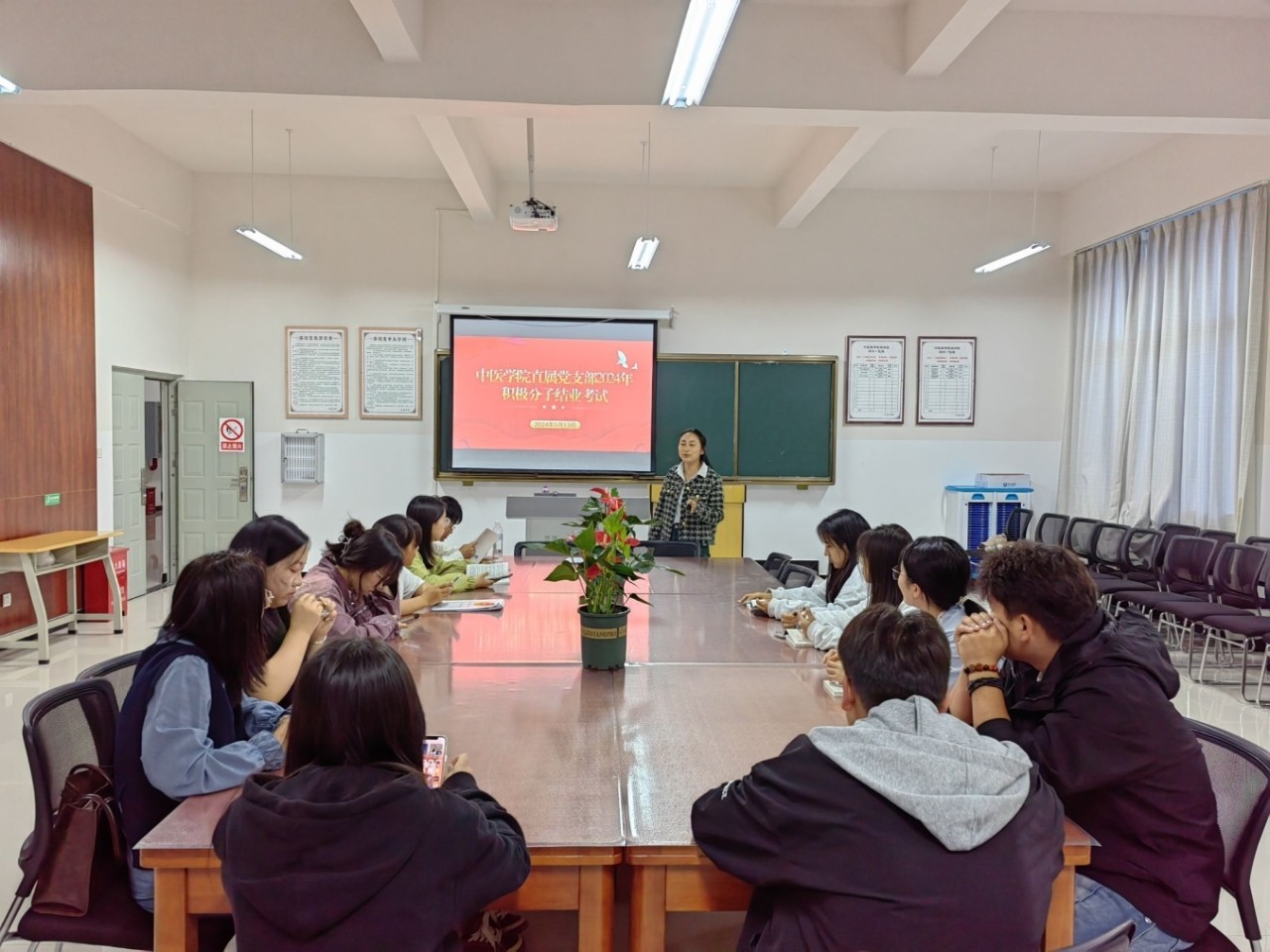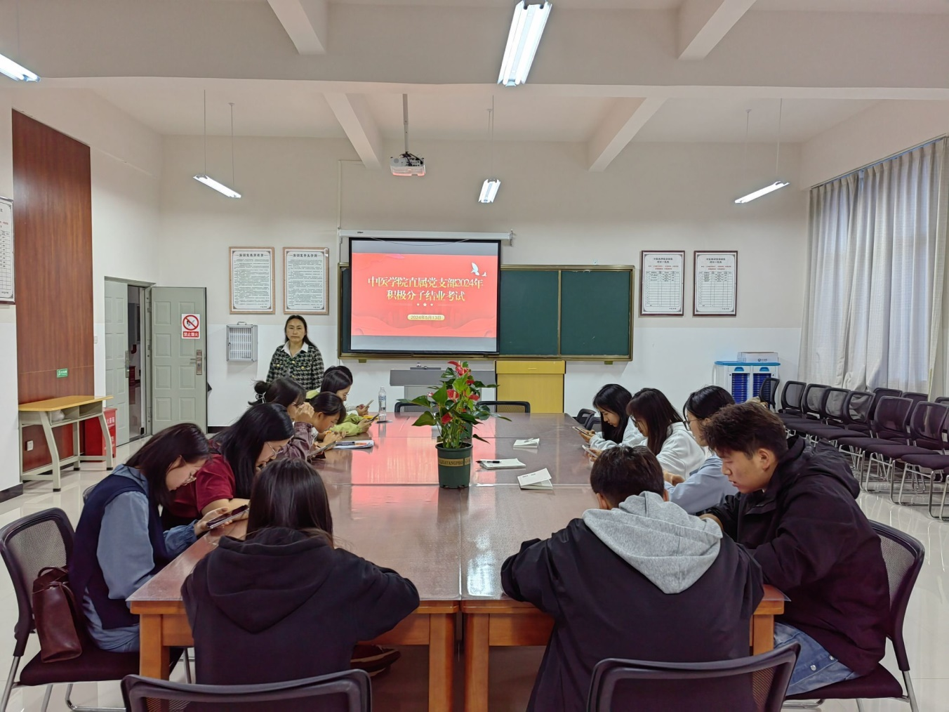 在春意盎然的五月,中医学院直属党支部于2024年5月13日19:30组织开展2024年积极分子结业考试。此次考试旨在深入贯彻习近平新时代中国特色社会主义思想,全面检验入党积极分子的理论学习成果,确保他们在思想上、政治上、行动上与党组织保持高度一致。