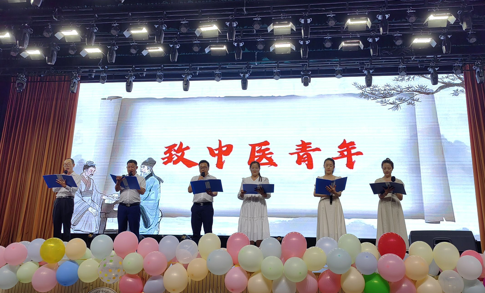 学生舞蹈《月下胡璇》、《China》、《万物生》以舞传情,表达了中医学子对中国传统文化的传承及对未来的欣然向往。诗朗诵《医者心、白衣行》饱含激情,同学们受到了医者精神的熏陶,相信在未来的医者之路上,“医心、医德、医志”会更加清晰地铭刻在他们的脑海里,扎根在他们的心灵里。