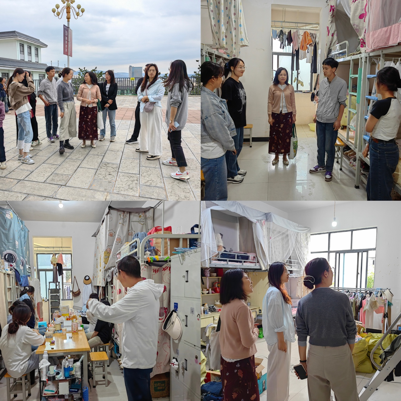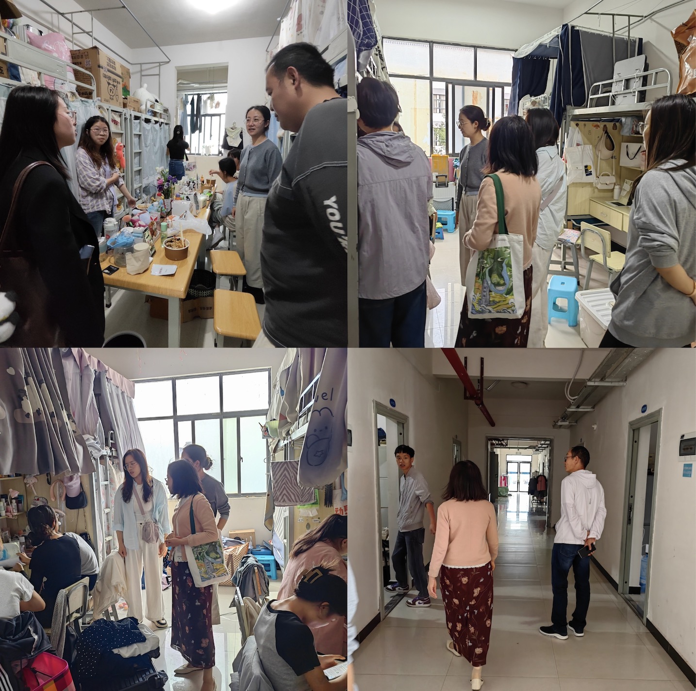 走访结束,院长亲切地叮嘱同学们要注意身体,鼓励同学们要继续坚定理想信念,要以更加饱满的心态去面对新的学习和生活,拥抱变化,学会积极调节自我情绪。此次宿舍走访为入住新宿舍、开展新生活的同学们带来了极大的鼓励,也让同学们的心灵获得了满满的暖意。