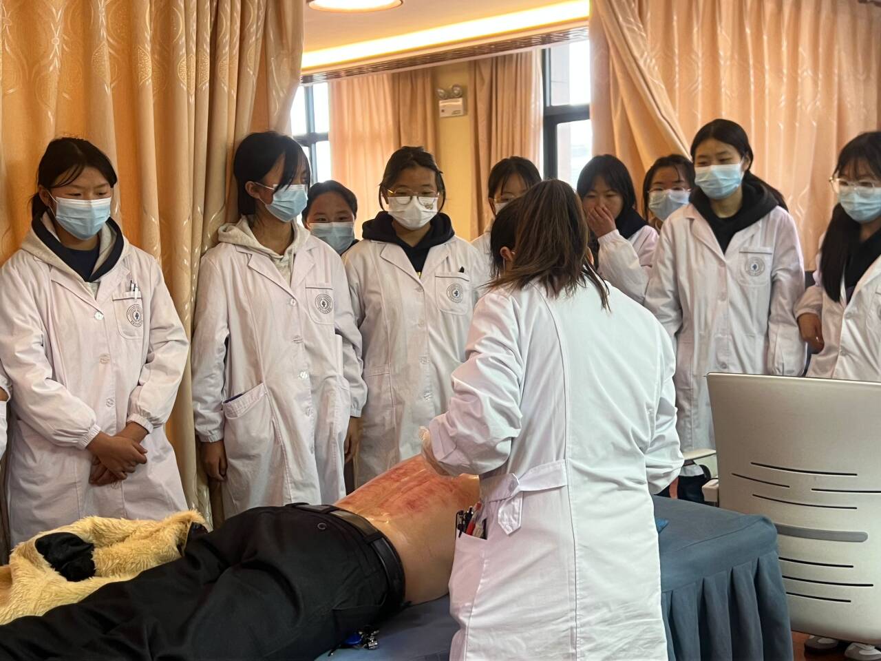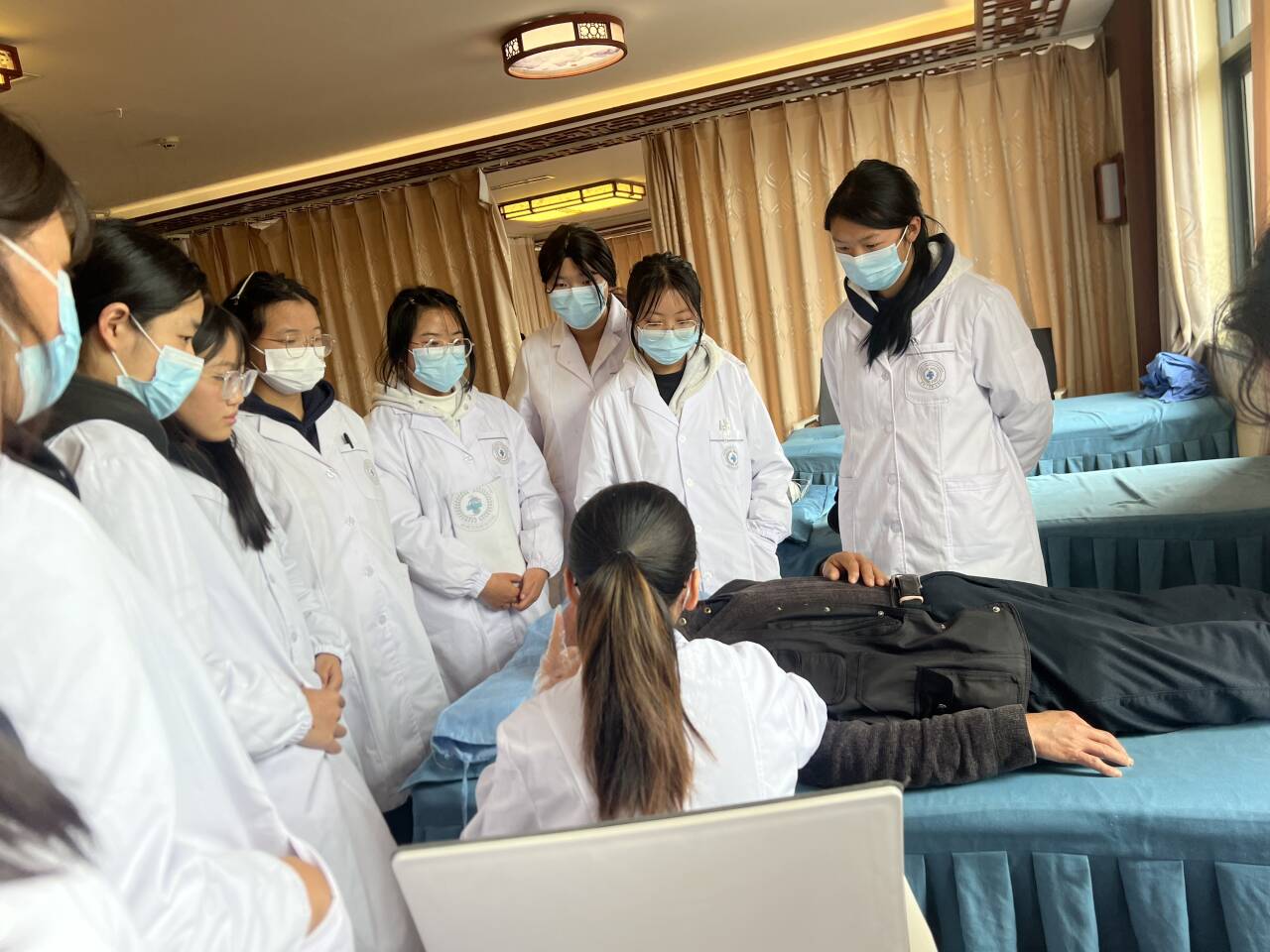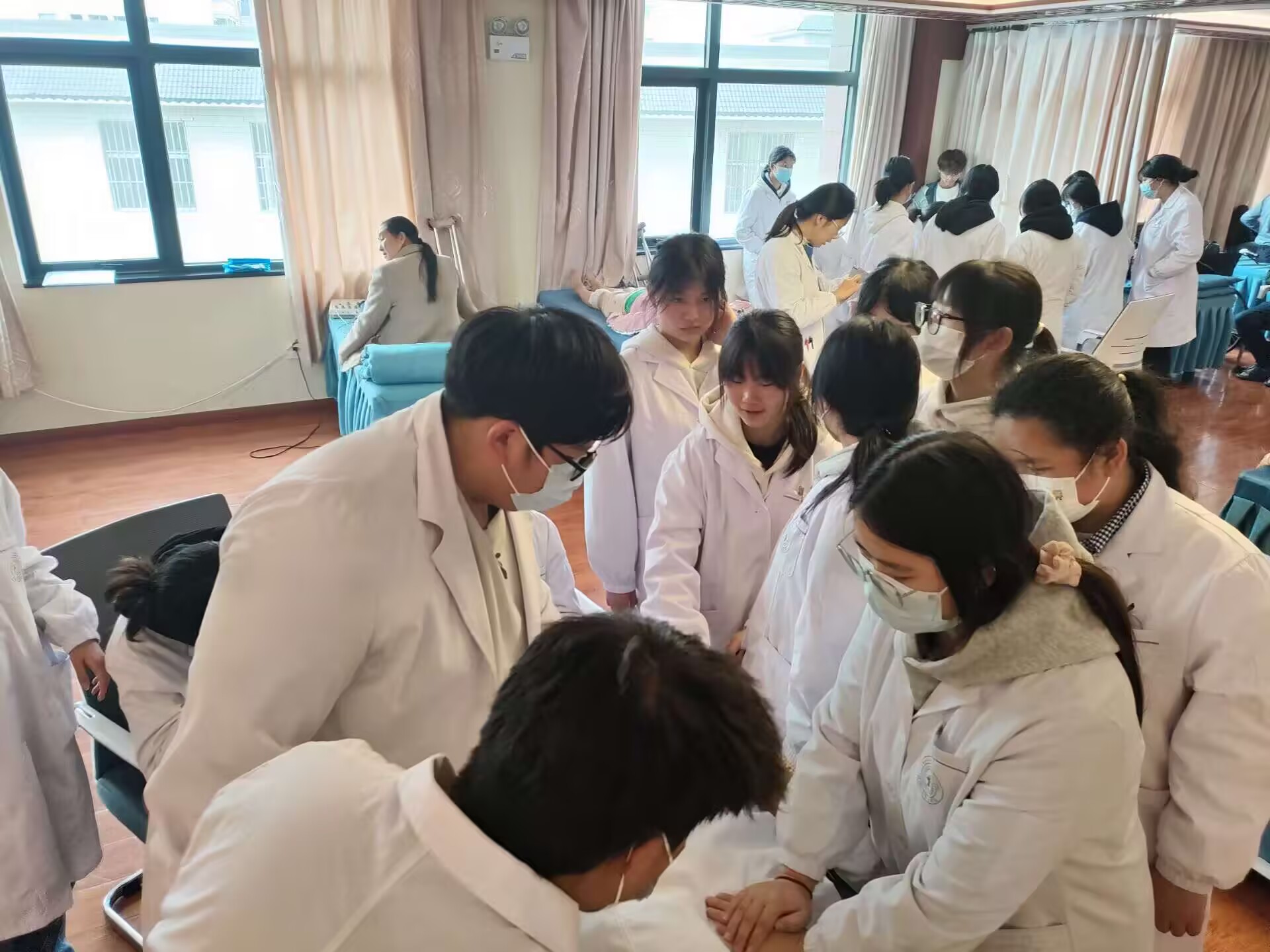 见习期间,学生分组跟随带教老师深入中医康复科等科室,观摩康复治疗过程,学习中医康复技术在临床中的应用。带教老师结合实际病例,讲解康复治疗方案及操作要点,指导学生与患者沟通,提升实践能力。