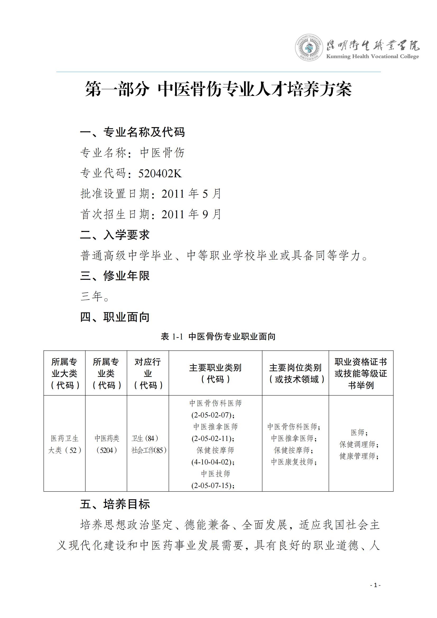 中医骨伤专业人才培养方案(2023级)