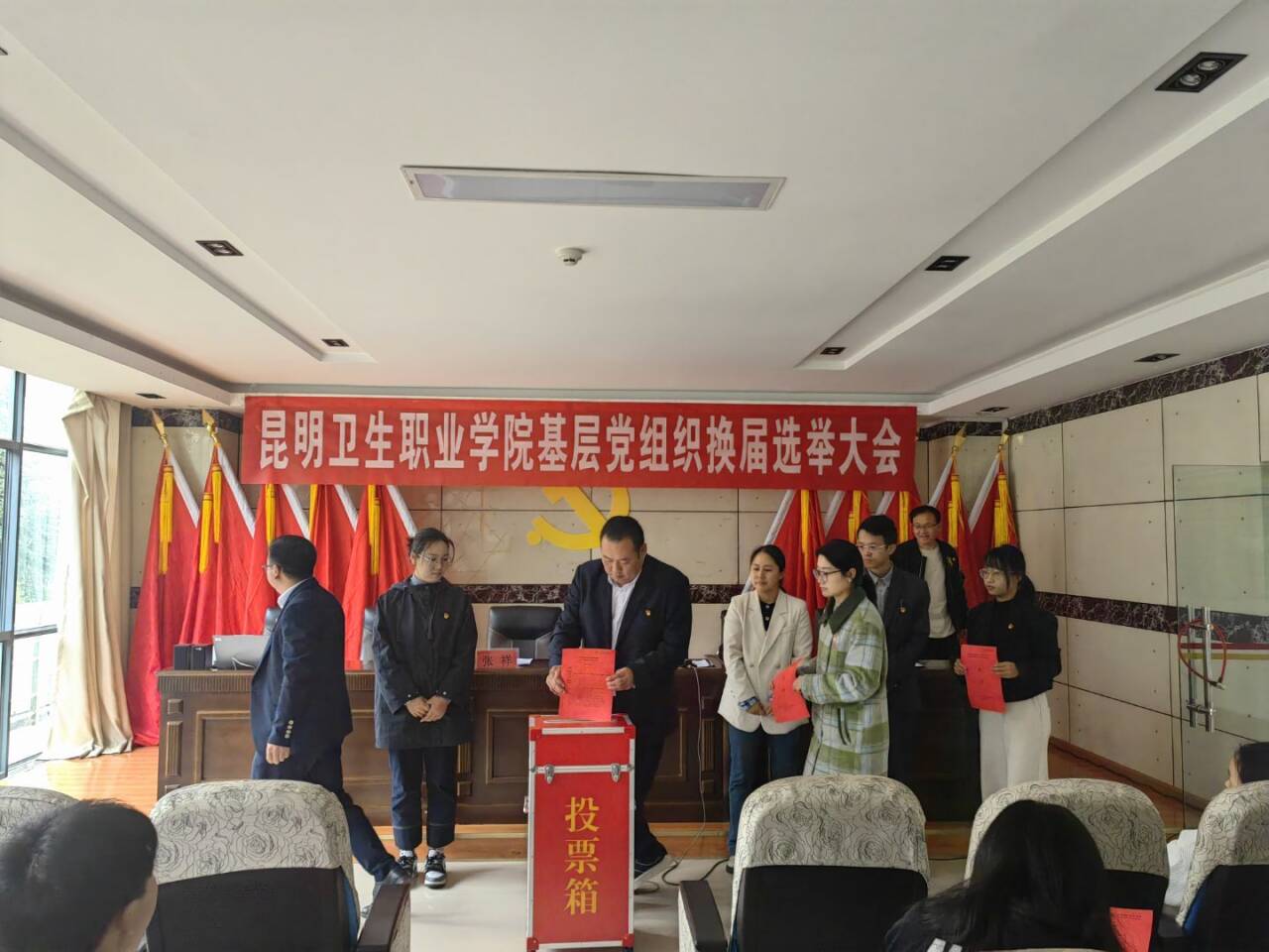 为深入学习贯彻习近平新时代中国特色社会主义思想和党的二十大精神,进一步加强基层党组织标准化、规范化建设,选优配强学院党支部班子,筑牢战斗堡垒根基,根据《中共今年会官方网站委员会关于基层党支部设置调整和各党支部换届选举工作方案》要求,10月23日15:00,中医学院直属党支部在行政楼4楼大会议室召开党员大会,圆满完成支部委员会换届选举。大会应到正式党员21名,实到17名,符合法定人数。学院党委委派徐世美、罗志英两名同志到会指导。会议由上一届支部委员易斯坐同志主持。