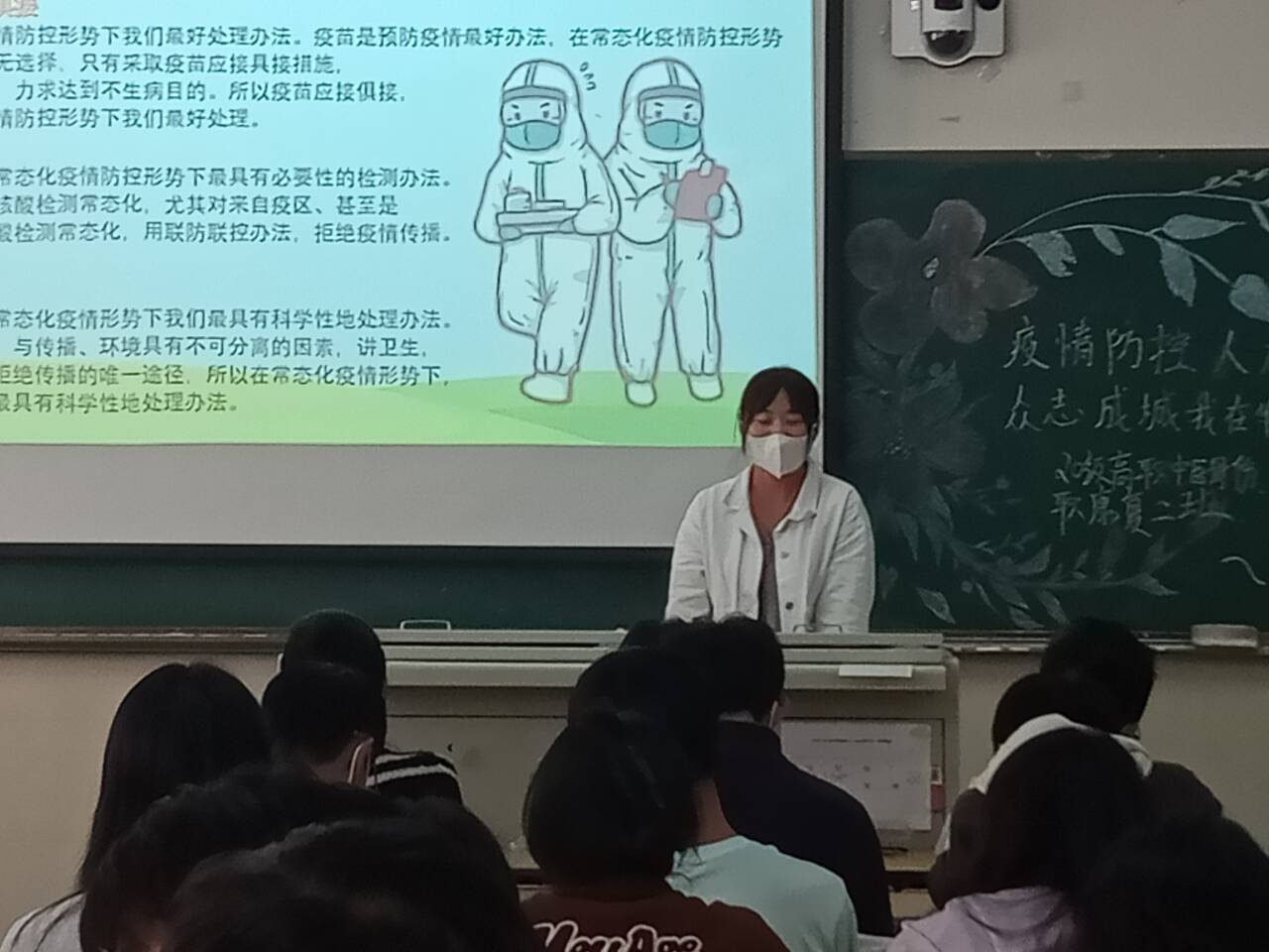 通过主题班会,各班同学们写下了本次主题班会的心得感悟,还分享了自己在当疫情防控志愿者时的见闻。所有同学通过本次主题班会的召开,了解了党和国家的疫情防控政策,掌握了科学的防疫知识与方法,正确面对当前疫情防控的严峻形势。深入理解了“防疫与自身健康”“防疫与家庭幸福”“防疫与国家安宁”之间的密切关系,深入理解了“生命重于泰山,疫情就是命令,防控就是责任”的深刻含义。